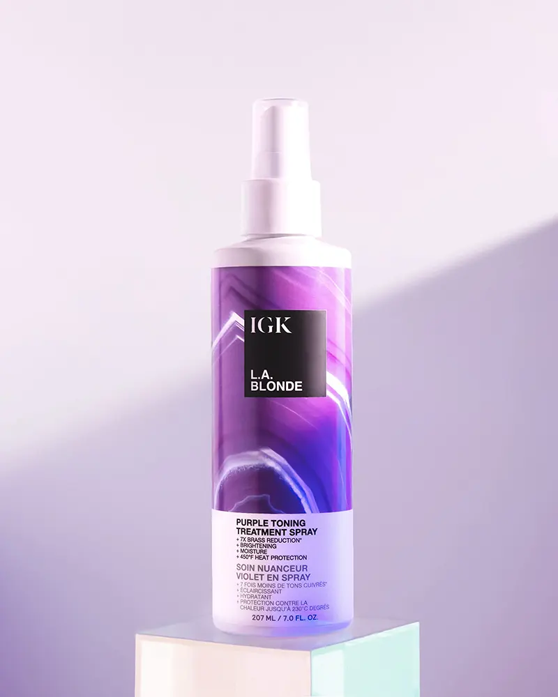 IGK LA BLONDE Purple Toning Treatment Spray | Brighten + Neutralize Brass + Heat Protectant | Vegan + Cruelty Free | 7 Oz
